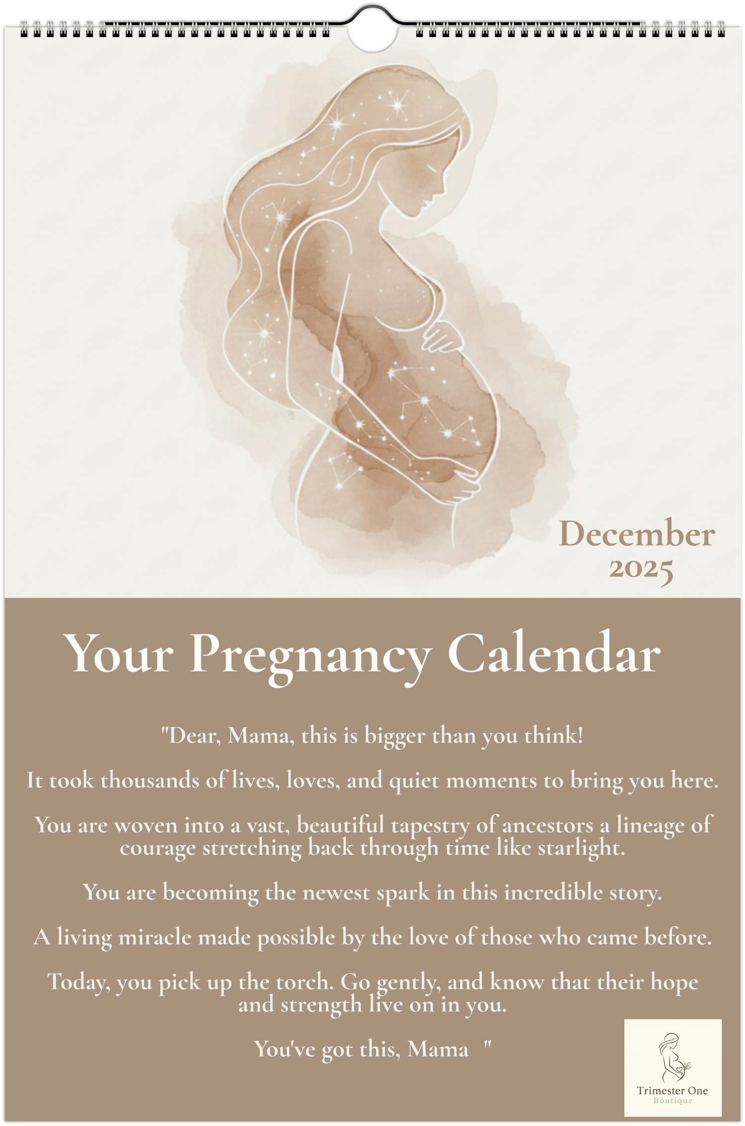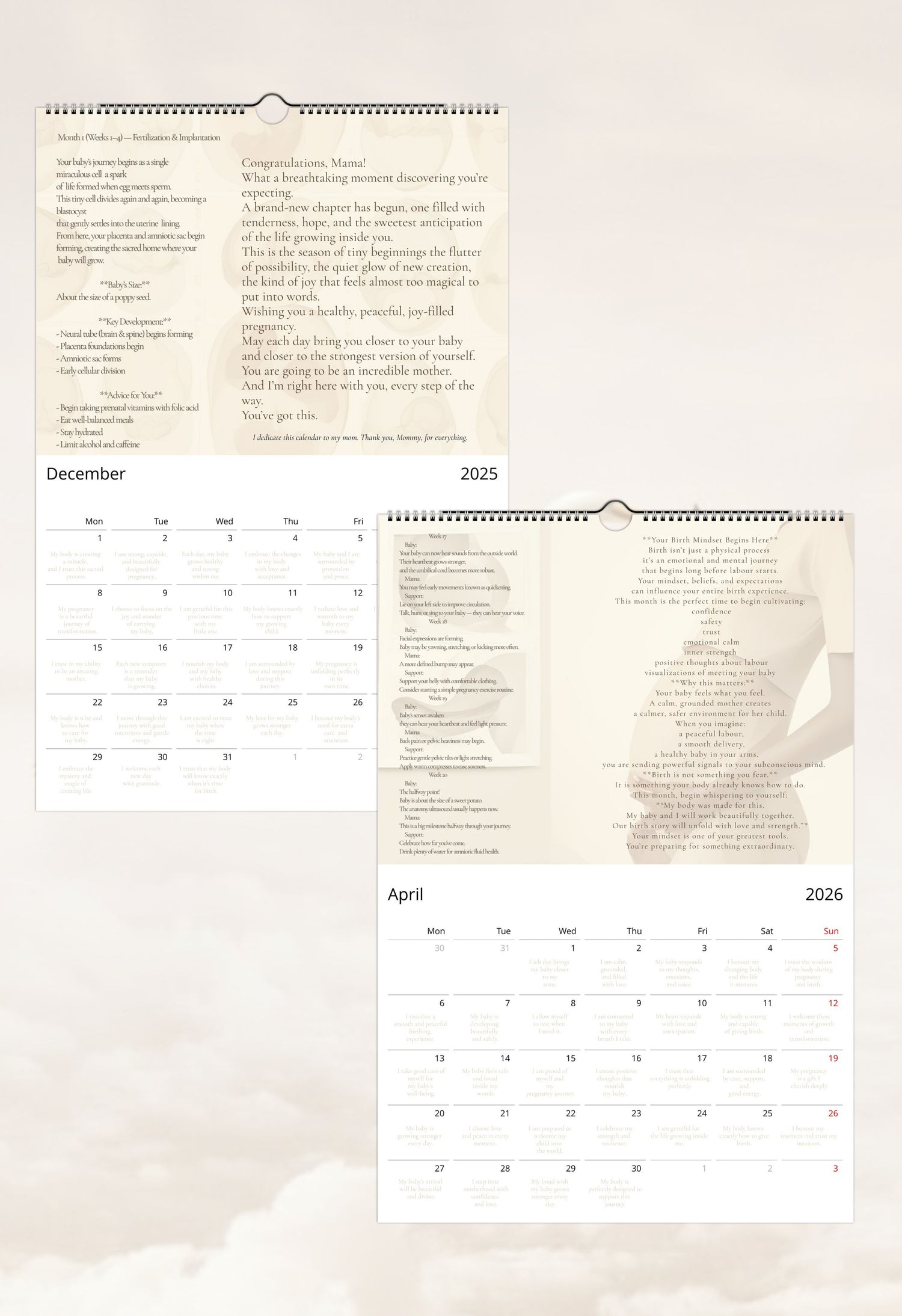 This calendar was created to walk beside you through the emotional, physical, and mental shifts of pregnancy, starting from the very first weeks, when everything feels new, unreal, and overwhelming.